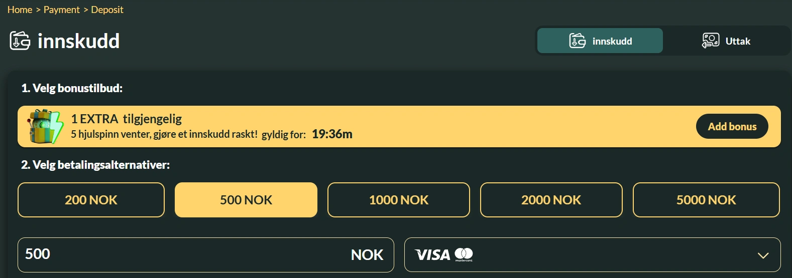 Min. innskudd: 500 kr