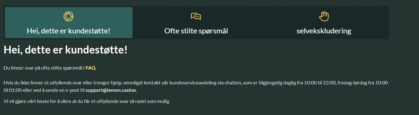 Til nå har det ikke vært rapportert om lovbrudd, bøter eller andre saker som stiller Lemon i et negativt lys. Nettsiden fremstår ryddig og transparent, med lisens- og kontaktinformasjon lett synlig nederst på siden. En liten svakhet er at selskapet ikke har offentliggjort hvem som leder casinoet eller hvor mange ansatte som står bak, men helhetsinntrykket er likevel solid og profesjonelt.