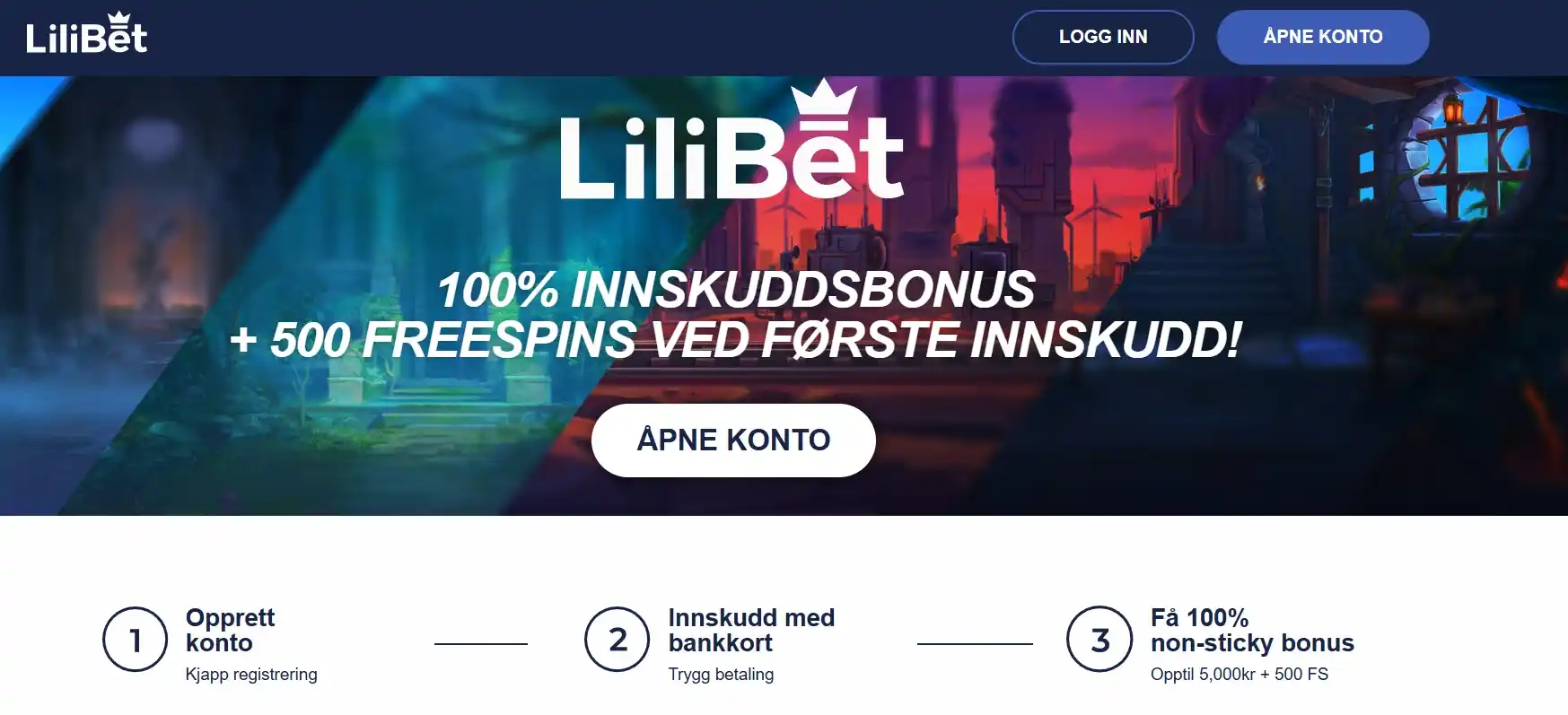 LiliBet Casino er en moderne plattform som kombinerer casinospill og sportsbook i ett og samme nettsted. Nettstedet er tilgjengelig på norsk og byr på et bredt spillutvalg med fokus på brukervennlighet. Her får du en solid totalopplevelse, enten du spiller via mobil eller desktop.
